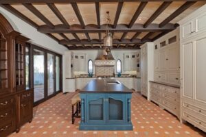 Lo más normal es que sea necesario reformar el suelo de la casa de campo, pero eso puedes hacerlo restaurándolo para que el estilo de la casa permanezca intacto. En caso de que no esté en buenas condiciones, puedes combinar el suelo de diferentes formas, por ejemplo, con un mosaico o rosetón que va a la perfección con este tipo de viviendas.